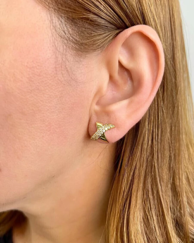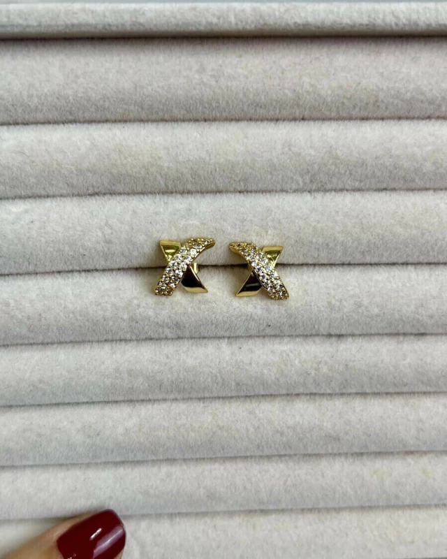 O brinco delicado modelo X é uma joia encantadora e sofisticada, perfeita para complementar qualquer look. Com um design elegante e cravejado com zircônias cristal, proporciona um brilho sutil e deslumbrante que chama a atenção. Este brinco é folheado a ouro 18k, garantindo durabilidade e um acabamento luxuoso, além de contar com tecnologia antialérgica, o que torna esta peça ideal para quem tem pele sensível. Um verdadeiro mimo que adiciona um toque de glamour e delicadeza ao seu estilo!